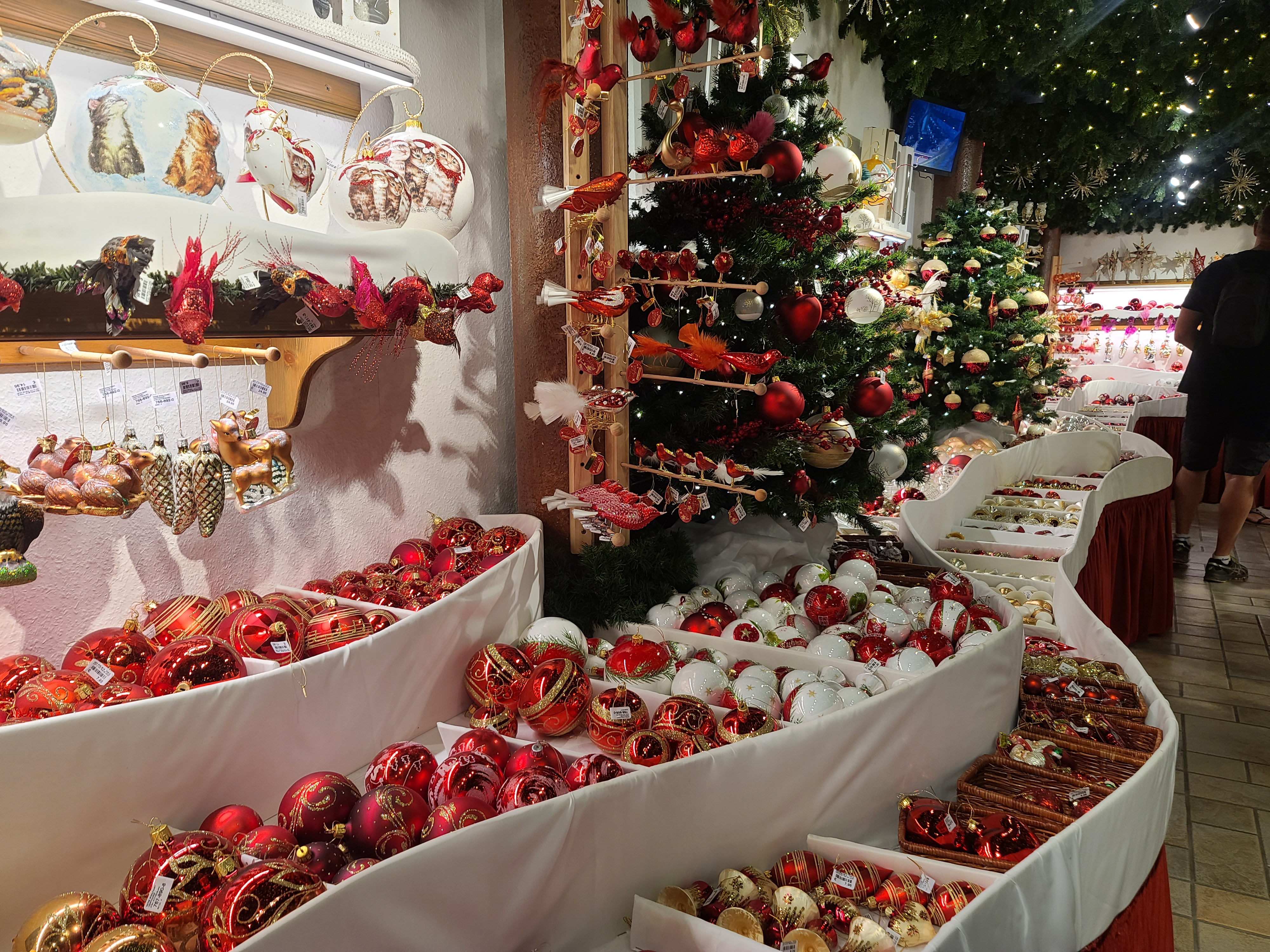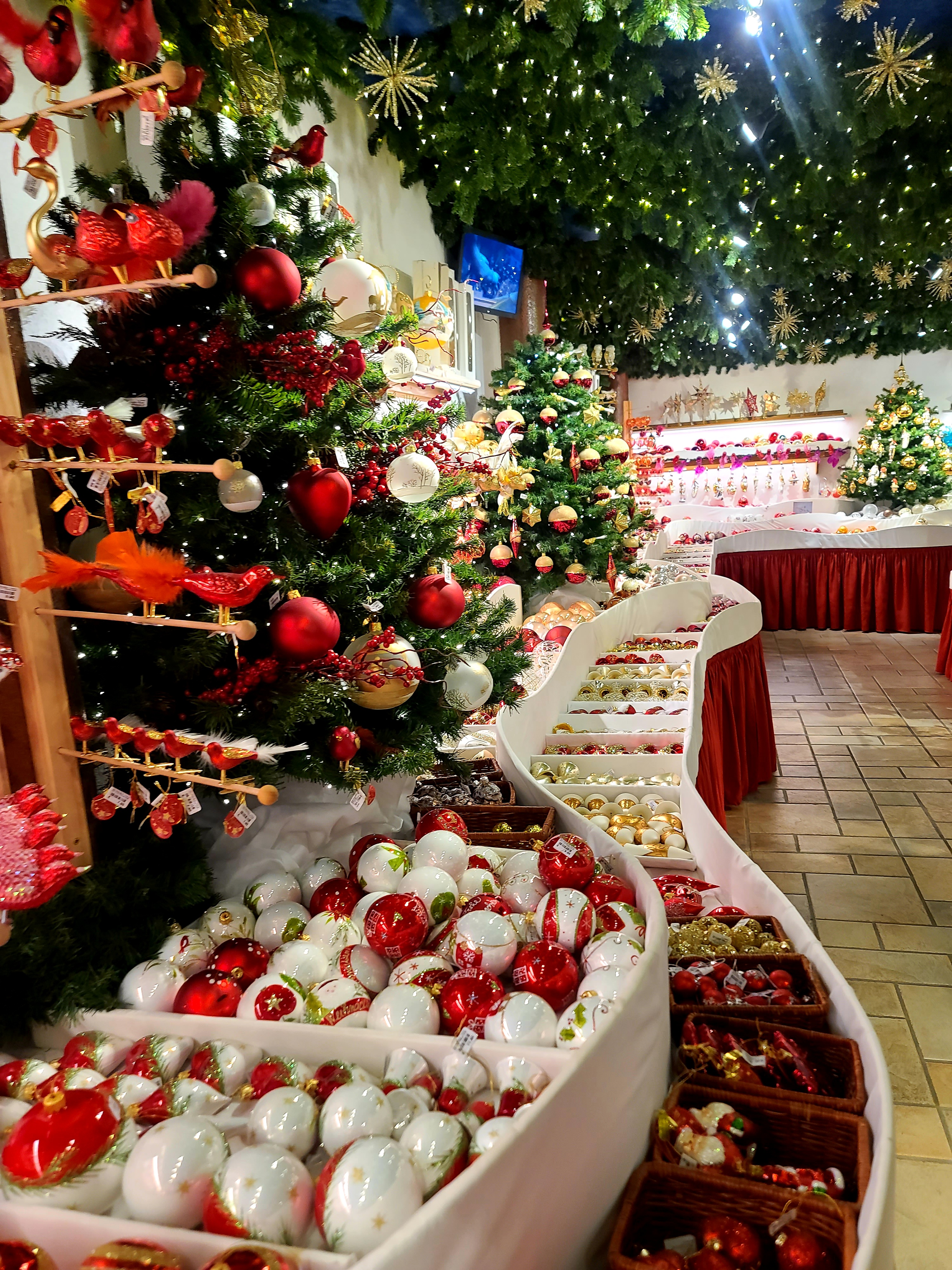 Exceptionnel ! Une boutique de décorations de Noël ouverte pratiquement toute l'année, des milliers de boules, décorations de sapins, personnages et autres articles pour réaliser sapins ou décorations de maison de toutes les couleurs ou dans un thème de couleur de votre choix. On remarquera l'absence cependant des guirlandes et des guirlandes lumineuses, leurs fournisseurs européens, et principalement allemand, ne faisant pas ces produits provenant généralement d'Asie... Véritable plaisir des yeux, il y en a pour toutes les bourses, les prix allant du mini jusqu'à plus de 2000 euros. Et en plus, le village perdu où se trouve la boutique est magnifique et contient beaucoup d'autres surprises artisanales et locales...